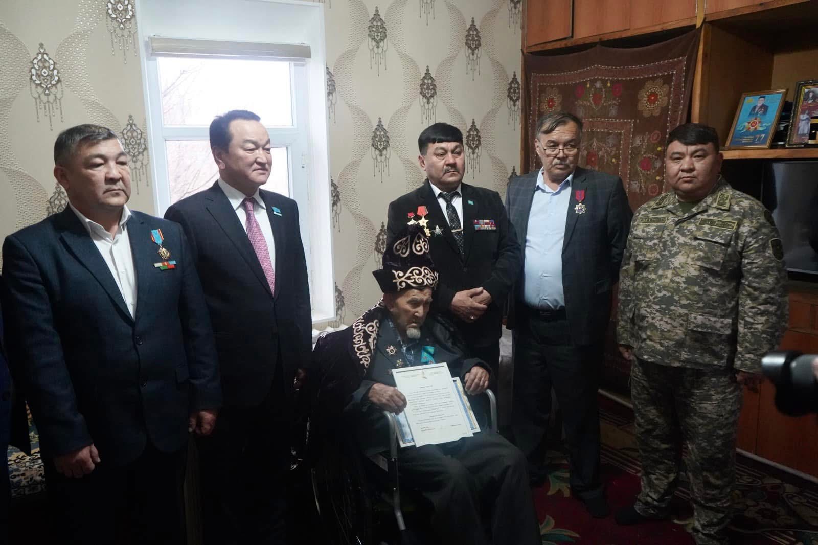 Қарт майдангерді өміріндегі маңызды тарихи белесімен құттықтауға «AMANAT» партиясы Түркістан облыстық филиалының төрағасы, Түркістан облыстық мәслихатындағы партиялық фракцияның жетекшісі Алтынсары Үмбеәлиев, Қазақстан Республикасы Қорғаныс министрлігінің Түркістан облысы бойынша қорғаныс істері жөніндегі департаментінің және осы құрылымның Түркістан қаласы бойынша басқармасының өкілдері, Түркістан облысы Ауған соғысы ардагерлері мен мүгедектер кеңесінің жетекшілік құрамы арнайы келіп, сый-құрметтерін көрсетті.